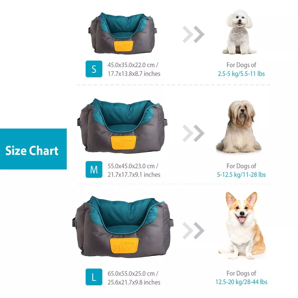 Cama cuadrada de la marca australiana GiGwi. Para perros y gatos. Cómoda, impermeable y fácil de lavar. Ideal para llevar en el auto.