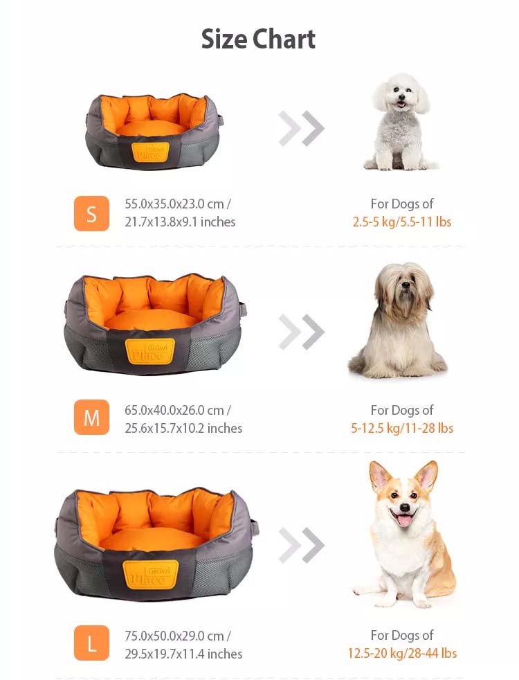 El tamaño S es ideal para un perrito tipo Teckel y el M es ideal para un perrito tipo Corgi.