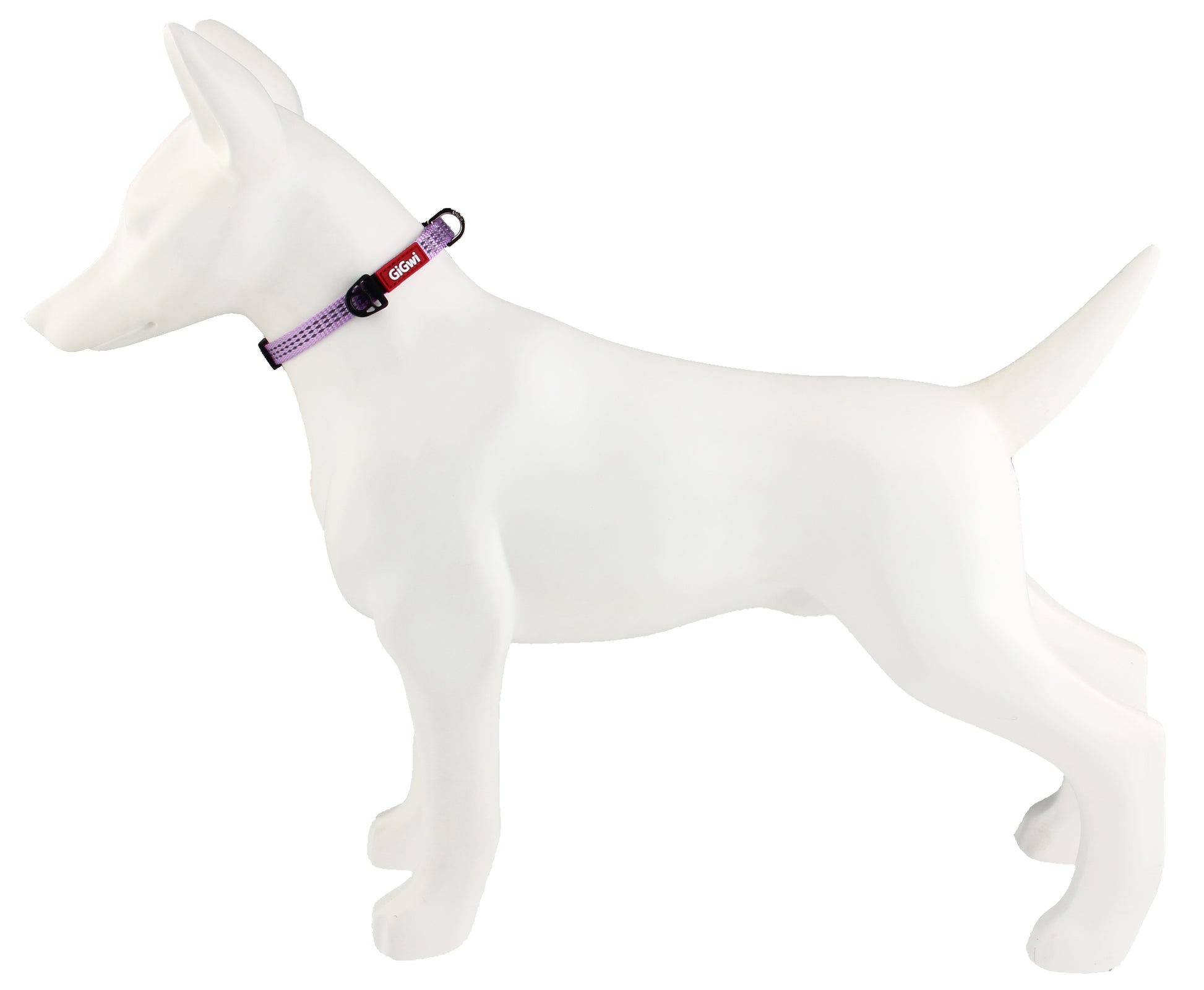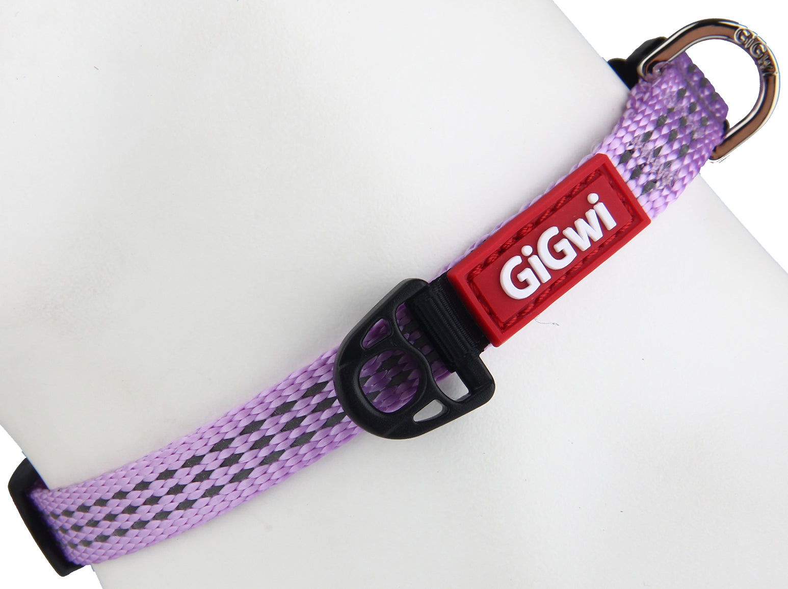 Collar de la marca Australiana GiGwi. Es de color morado, permite ajustar el acho y trae una argolla para enganchar la correa. Es para perros pequeños como Chihuahua, Yorkshire Terrier o un Teckel miniatura.