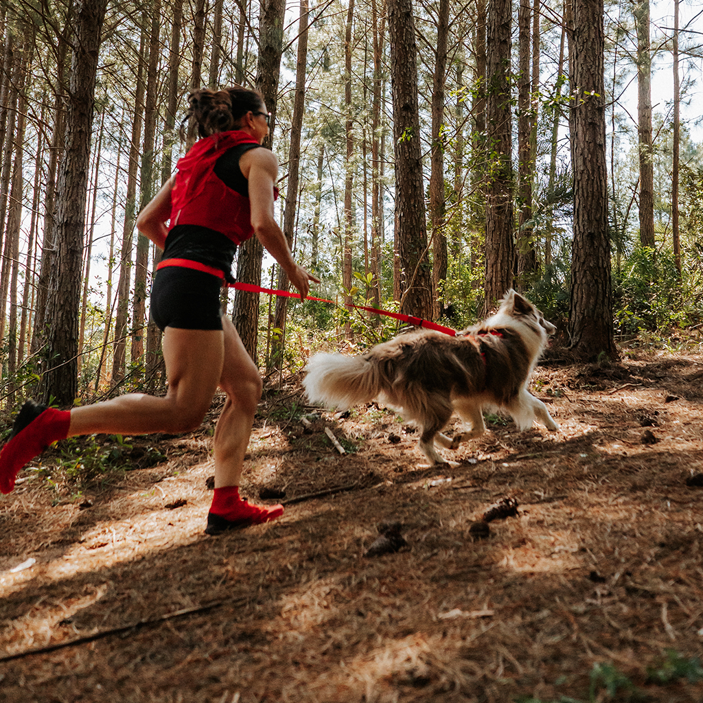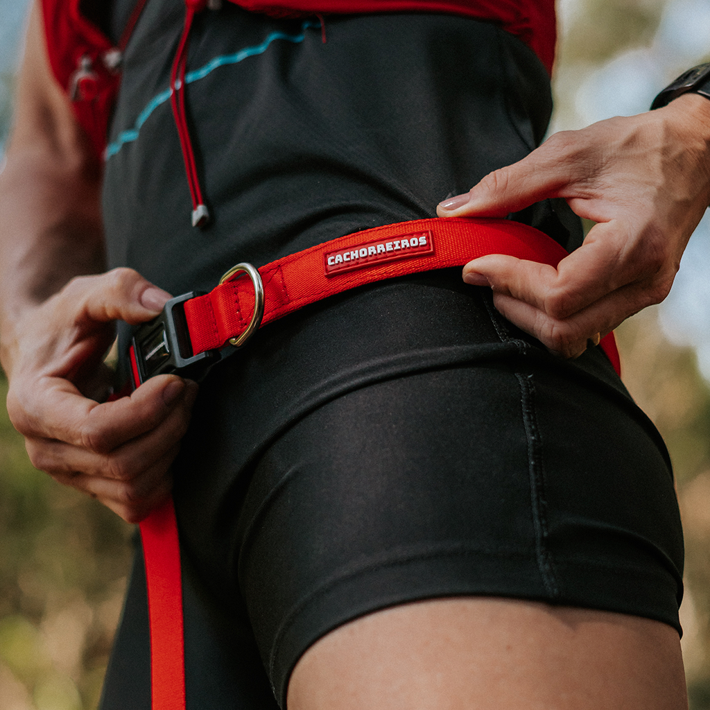 Correa manos libres, ideal para salir a correr con tu perrito, pero tambien la puedes usar como una correa tradicional. Hecha de poliester. Mide 2.5 cm de ancho y 2.3 m de largo. Tiene un mosquetón de seguridad hecho de zinc, lo que lo hace más seguro y liviano.