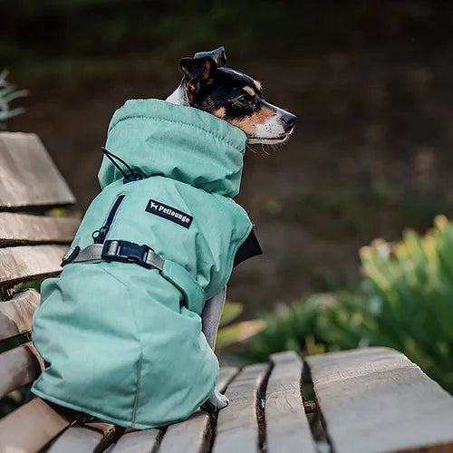 Esta parka para perros está diseñada con materiales resistentes y duraderos, que mantienen a tu perro calentito y seco en condiciones climáticas adversas.