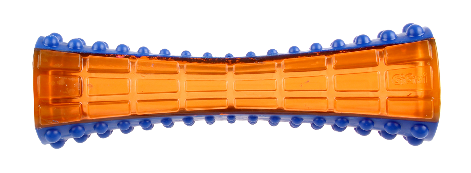 Está hecho de TPR duradero y no tóxico, por lo que es lo suficientemente resistente para los hábitos agresivos de masticación de su cachorro. También tiene surcos elevados para masajear las encías brindando una sensación de masticación más satisfactoria. La forma exclusiva de Johnny Stick imita la forma de los palitos naturales, lo que lo hace irresistible para su cachorro; además, ¡incluso tiene un squaker interno para estimular los sentidos de su cachorro con cada masticación! Además tiene colores brillantes, por lo que es fácil de ver incluso cuando se usa para jugar al aire libre.