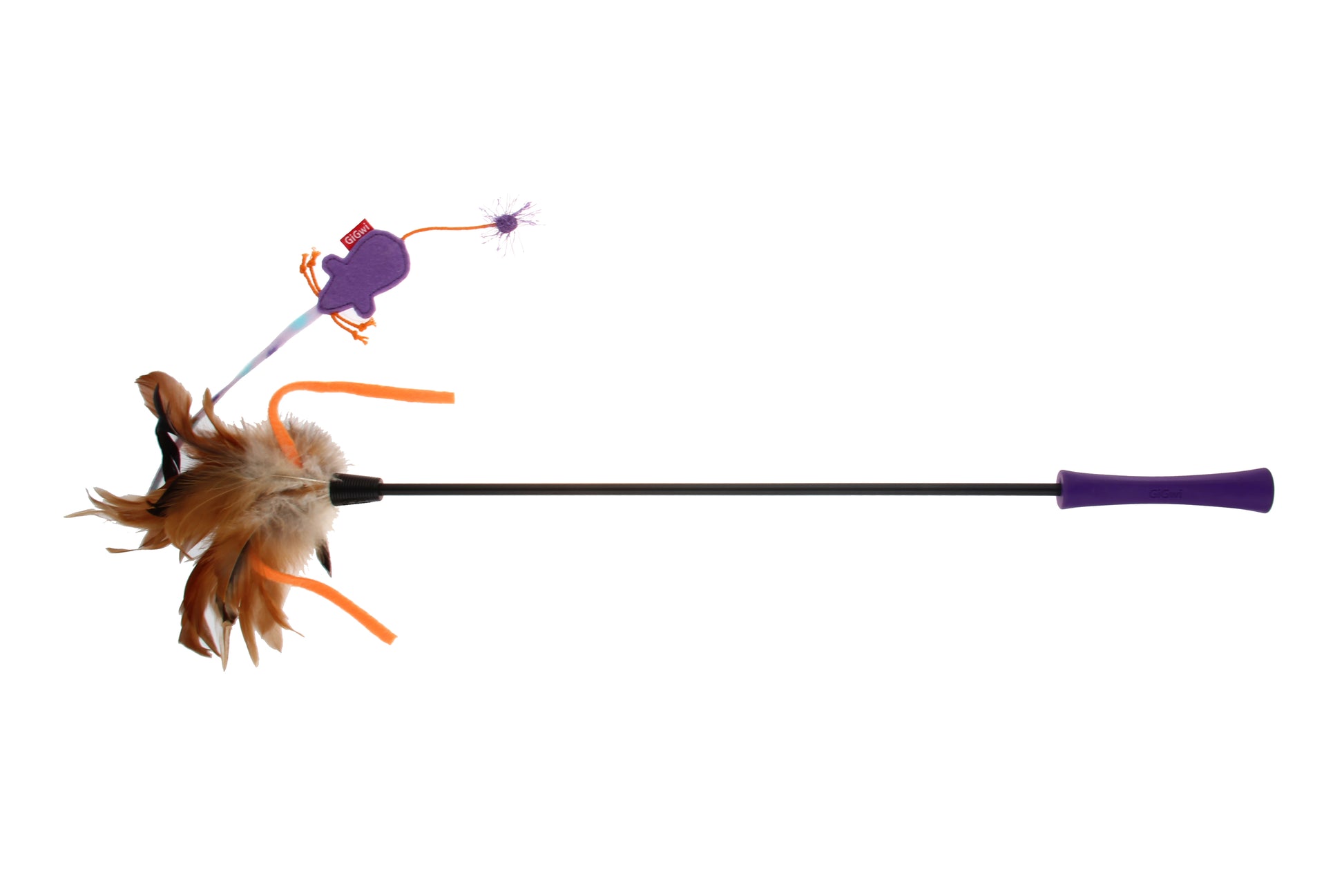 Juguete para gatos con pluma de natural y ratón en la punta para estimular el instinto de caza de tu gatito. La varilla es larga para mayor proteccion y distancia de juego.